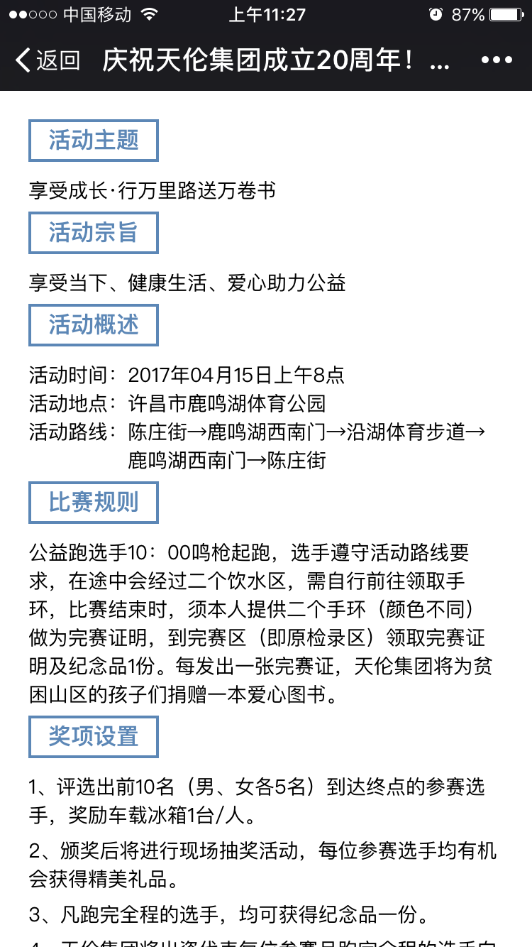 愛心助力公益,跑步身心健康。天倫集團將替每位跑完全程的參賽者,向貧困地區(qū)的孩子們捐贈一本愛心圖書,讓孩子們更好的享受成長,汲取更多的知識營養(yǎng)。祖國未來的花朵,延續(xù)國家的發(fā)展,見證我們的未來。