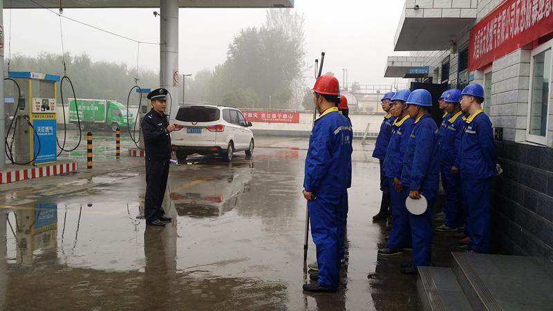上午8時30分,鄧莊派出所、公司生產(chǎn)副總周總一行人員來到鄧莊CNG加氣站觀摩演練。9點整,演練準時開始,鄧莊加氣站內(nèi)各項生產(chǎn)正常進行,9時10分左右,加氣工李亞軍發(fā)現(xiàn)加氣車輛內(nèi)有一位乘客,便要求駕駛員讓乘客下車在休息區(qū)等候,否則無法加氣。在與司機解釋讓車內(nèi)乘客下車的過程中,因該乘客處于醉酒狀態(tài),有點不耐煩,情緒逐漸失控,左手拿著打火機威脅炸掉加氣站,右手拿著伸縮棍要打加氣工,事態(tài)緊急。